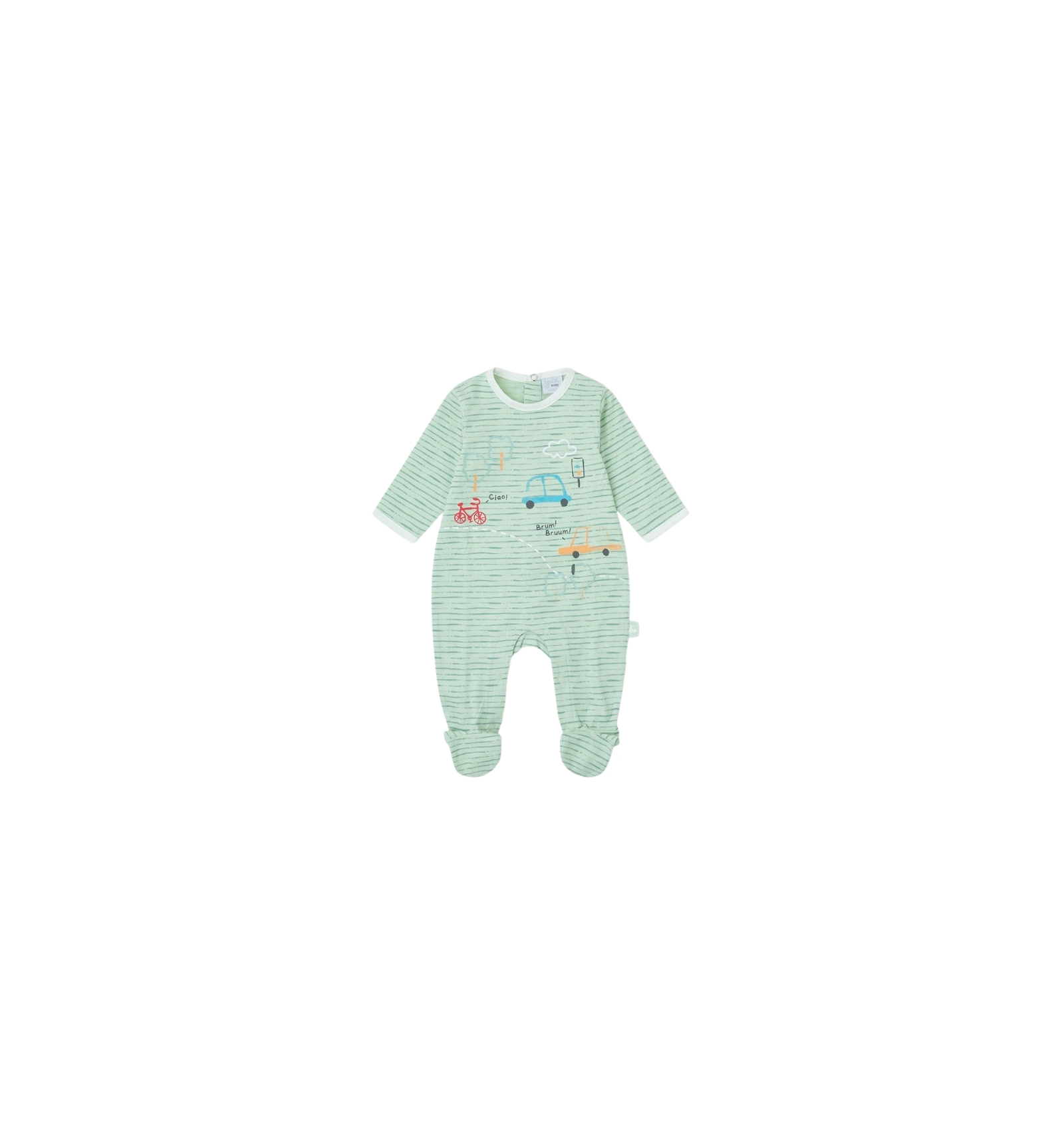 Il design a righe sottili dona un tocco moderno e delicato, mentre le simpatiche stampe colorate rendono la tutina ancora più adorabile. I bottoni automatici sul retro permettono un cambio rapido e pratico, fondamentale nei primi mesi di vita.