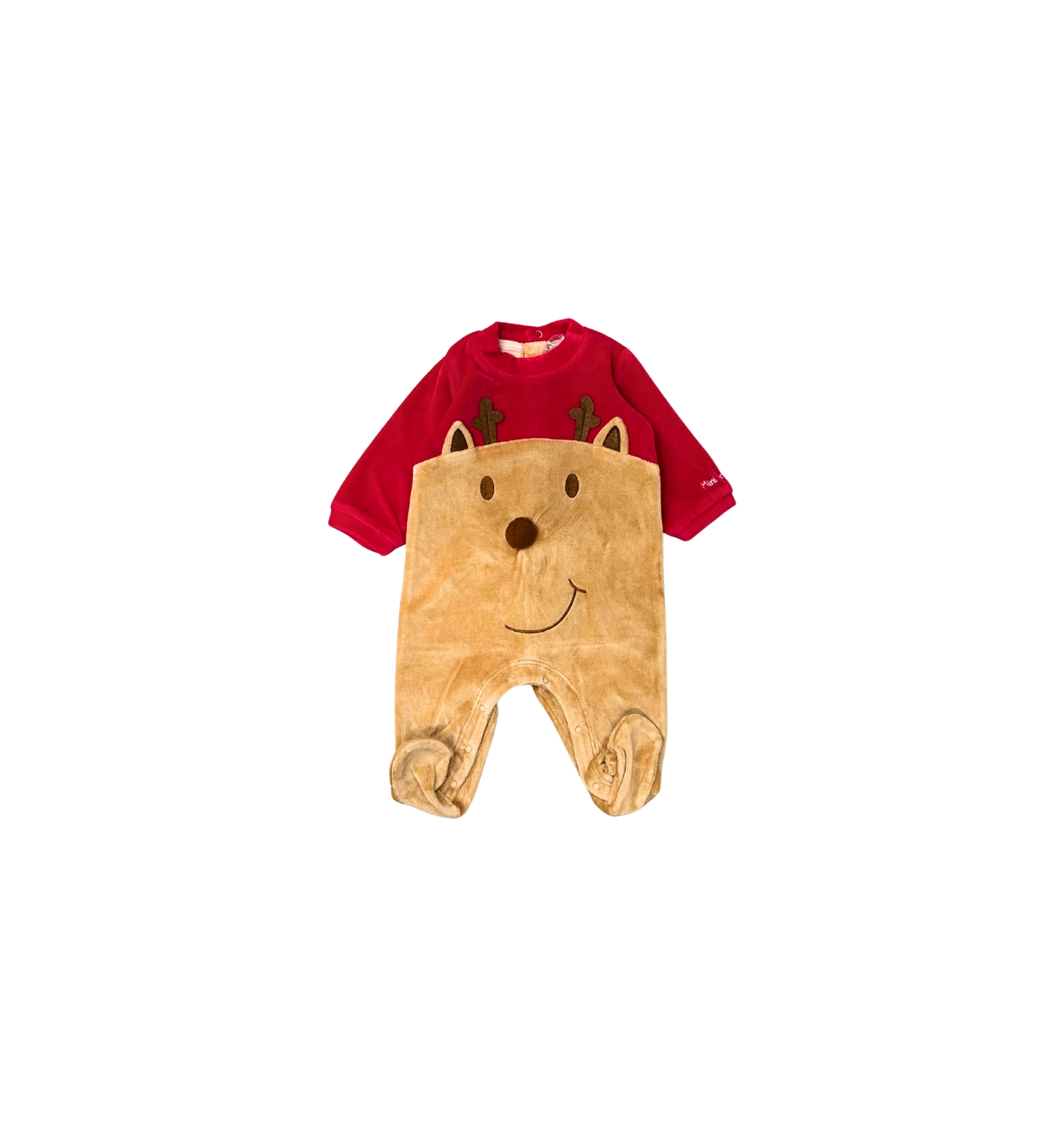 Se sogni un Natale pieno di ricordi tenerissimi, questa tutina da neonato con renna è il capo perfetto da mettere sotto l’albero. Il corpo color cammello riproduce un dolce musetto di renna con orecchie e corna, mentre le maniche rosse richiamano subito l’atmosfera Natalizia.